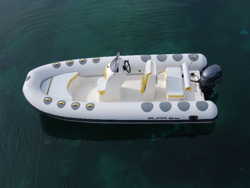 Koristeći materijal Hypalon čija je kvaliteta i izdržljivost već potvrđena u našim prijašnjim modelima, proizveli smo čamac izuzetnih maritimnih sposobnosti.Kvalitete koje treba posebno naglasiti kod BURE 5.6 su prostranost i funkcionalnost, postignute novim oblikovanjem i smještajem skiperskog sjedišta. Uz redizajniranu konzolu i završnu obradu s mogućnošću odabira detalja u žutoj ili narančastoj boji, te zanimljivo oblikovane protuklizne elemente, BURA 5.6 je čamac koji neće ostati nezapažen.